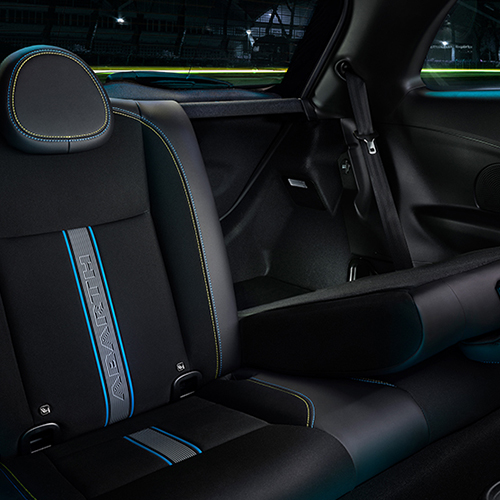 • Look sportivo (cerchi in lega da 17”, fari LED con Abarth Signature, paraurti aggressivi e linee taglienti)