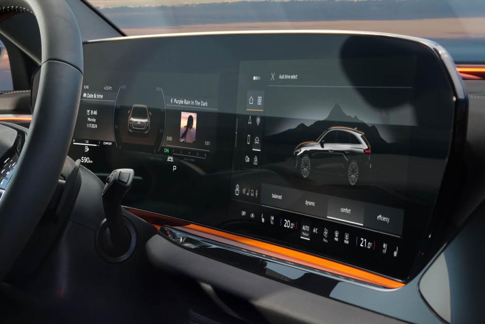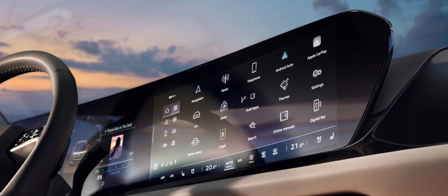 L'Audi virtual cockpit da 11,9” e l'MMI touch da 14,5” sono integrati nel display panoramico MMI con tecnologia OLED, orientato verso il conducente. Il suo particolare design arcuato e avvolgente rende più confortevole l’utilizzo delle funzioni di infotainment. Lo schermo MMI lato passeggero, da 10,9” consente di godere di diverse funzioni, come quelle di navigazione e di intrattenimento.