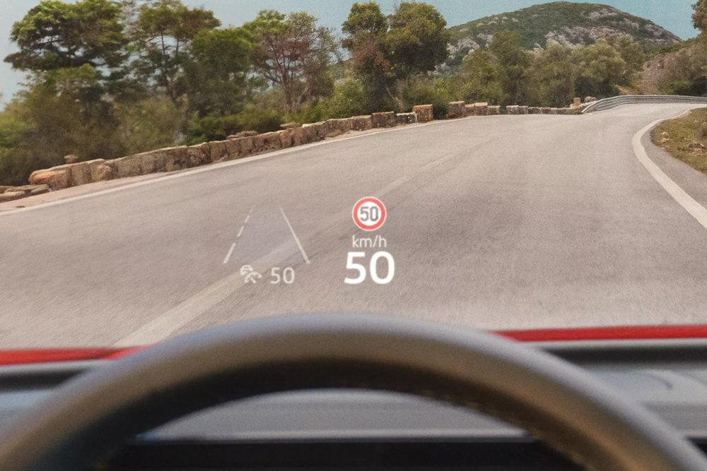 Poter controllare informazioni importanti mantenendo comunque la visuale sulla strada è il grande vantaggio offerto dall’Head-up display opzionale. Parte del parabrezza diventa una superficie di proiezione che mostra la tua velocità, i messaggi provenienti dai sistemi di assistenza alla guida o le istruzioni di navigazione. La proiezione rimane chiaramente leggibile anche quando la luce colpisce il parabrezza in modo diretto.