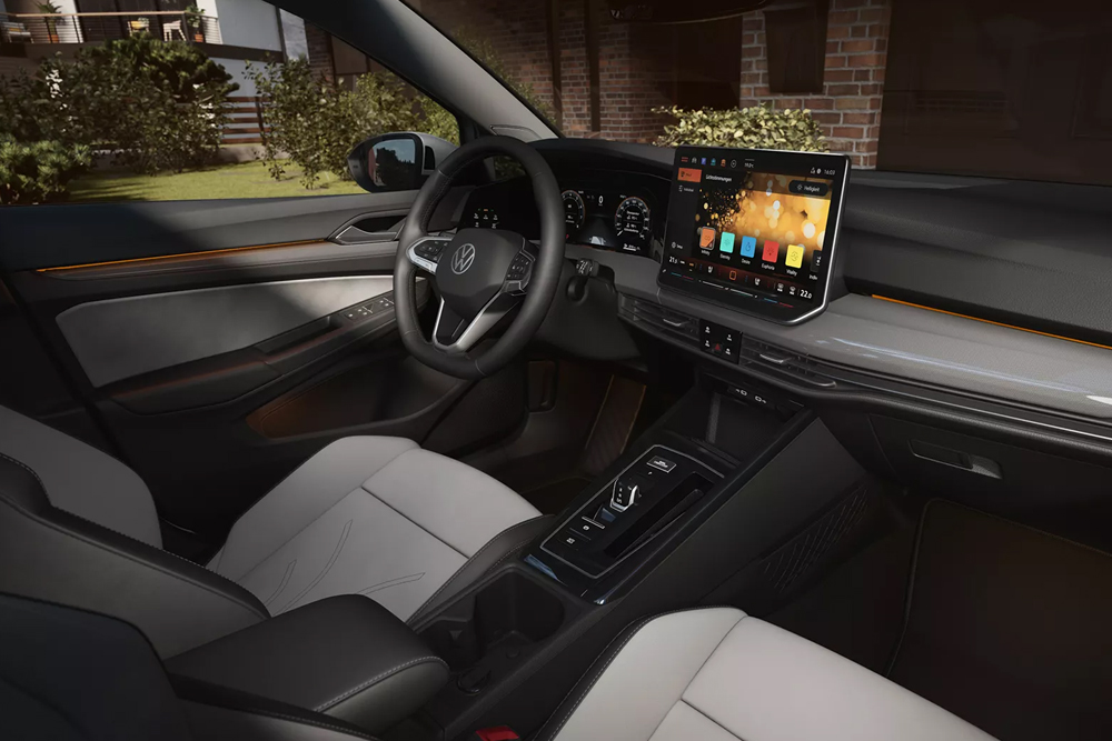 Gli interni riprogettati di Nuova Golf Variant offrono grande comfort per cinque persone: sedili accoglienti (disponibili con rivestimenti in tessuto o ArtVelours), spazio generoso per le gambe e per la testa in ogni sedile. Il display centrale touch fino a 12,9", la nuova generazione di software più intuitivo, il Digital Cockpit Pro e il volante multifunzione con tasti fisici ti permettono di tenere tutto sotto controllo durante ogni viaggio. L’Ambient Light è disponibile in 10 colori (o 30 come optional), per creare l’atmosfera giusta in ogni momento all’interno dell’abitacolo. Il tetto panoramico apribile e inclinabile (disponibile come optional) si apre e chiude elettricamente. In caso di sole intenso, protegge gli occupanti grazie al vetro oscurato e alla tendina elettrica.