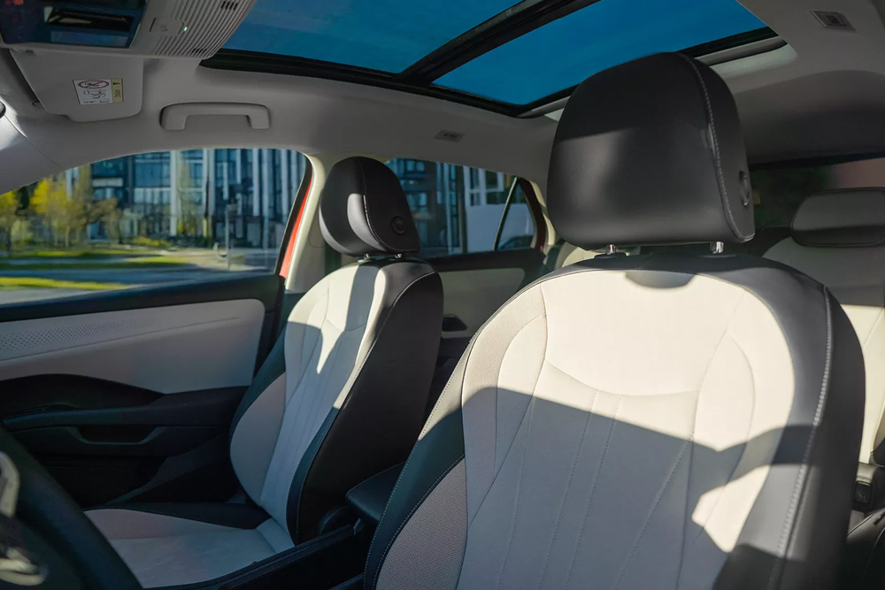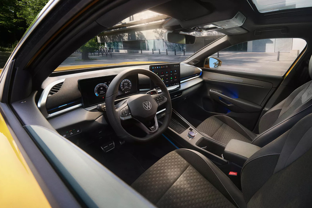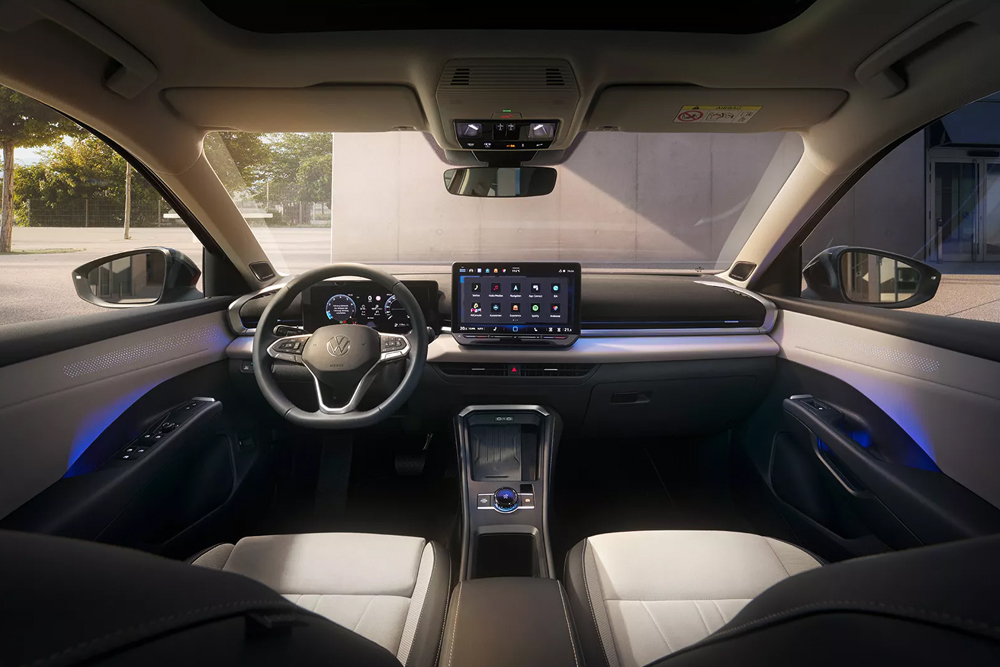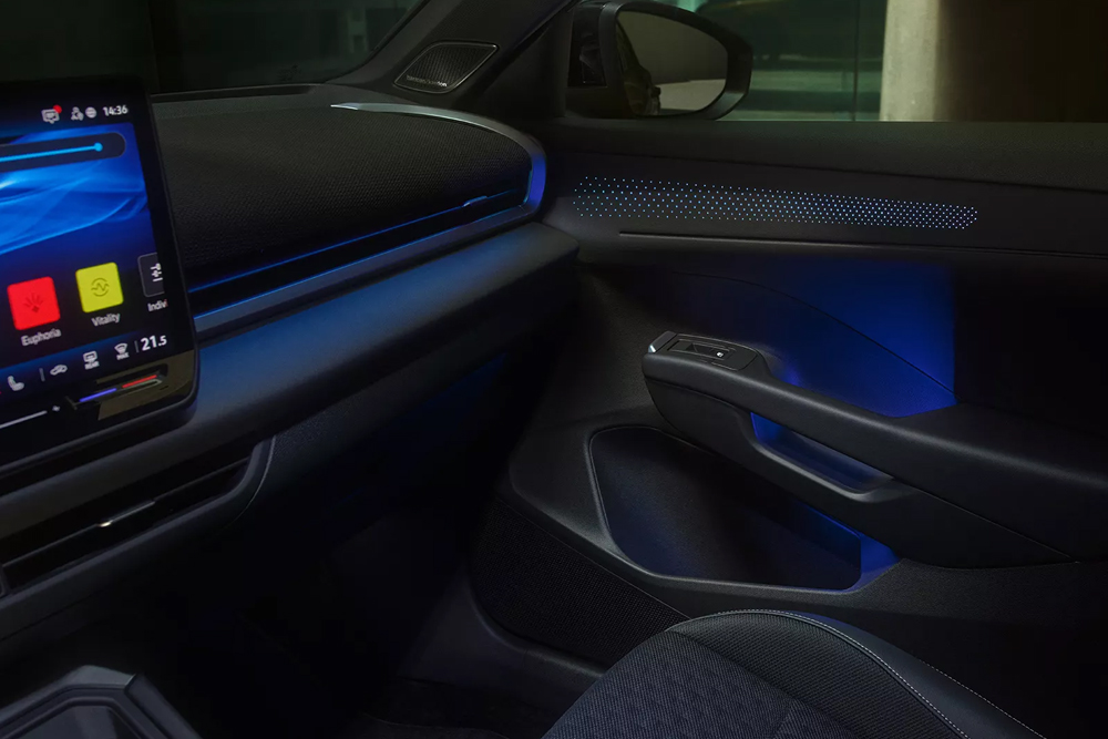 Gli interni di Nuovo T‑Roc coniugano design moderno ed elevata praticità. Lo spazio per le gambe nella seconda fila è generoso, mentre il bagagliaio raggiunge una capienza massima di 1.350 litri. Il bracciolo centrale offre uno scomparto aggiuntivo da 5,5 litri. Il display touch centrale da 12,9” consente di controllare con facilità le funzioni di navigazione, la musica e altro ancora. L'atmosfera è resa più accogliente grazie all'illuminazione ambiente a 30 colori, alle modanature luminose sulle porte, ai sedili in ArtVelours e al climatizzatore automatico a 3 zone. Il sedile ErgoActive lato guida con regolazione parziale elettrica a 14 vie e funzione massaggio garantisce massimo comfort anche nei lunghi viaggi. Il sedile del passeggero anteriore abbattibile offre ulteriore spazio per oggetti ingombranti.