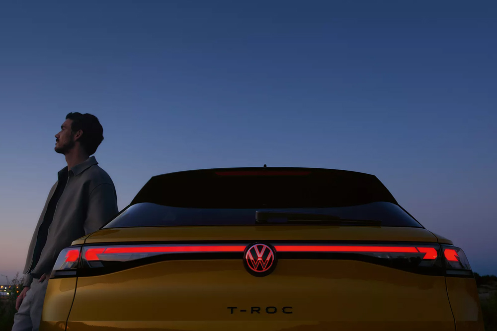 Nuovo T‑Roc esprime ancora più carattere: è lungo 12 cm in più rispetto alla generazione precedente, con frontale slanciato, paraurti marcati e linee decise. La sua iconica silhouette è valorizzata da cerchi in lega fino a 20”. Fari anteriori sottili, fascia luminosa continua e loghi Volkswagen illuminati creano una firma luminosa inconfondibile. I fari LED Matrix con tecnologia IQ.LIGHT e i gruppi ottici posteriori dal design tridimensionale (disponibili come optional) offrono una visibilità ottimale e un tocco di stile, di giorno e di notte.