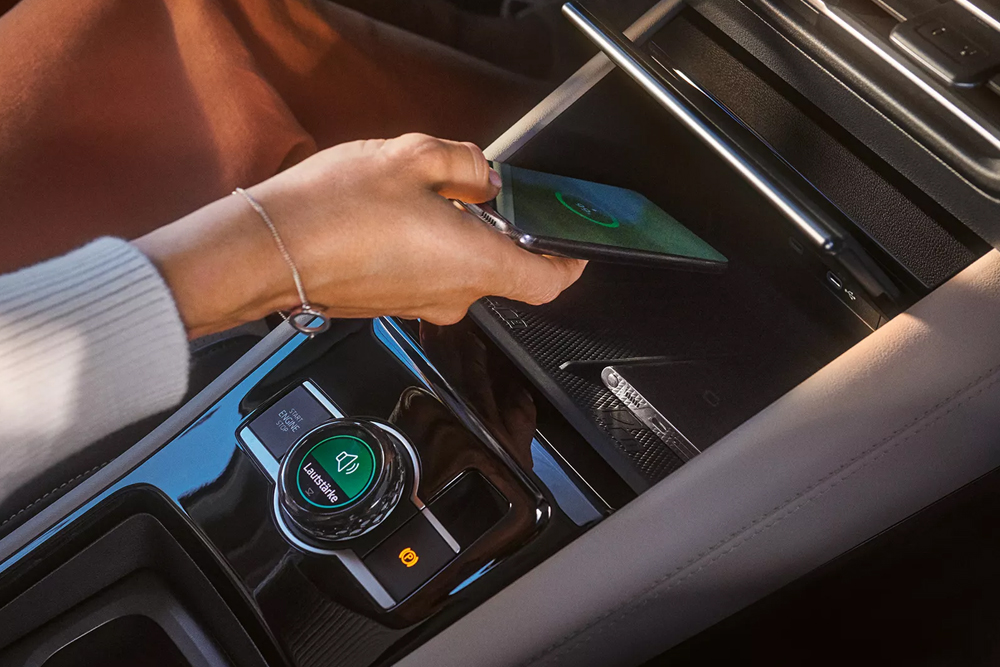 Guidare in sicurezza e, allo stesso tempo, telefonare? Nuova Tiguan ti offre tutto ciò di cui hai bisogno: il sistema vivavoce dispone di microfoni nella consolle sul tetto, mentre gli altoparlanti interni garantiscono un'elevata qualità del suono. Inoltre, nel vano portaoggetti anteriore è possibile caricare contemporaneamente in modalità wireless fino a due telefoni cellulari conformi allo standard Qi, con una capacità di carica di 15 W e raffreddamento del dispositivo.