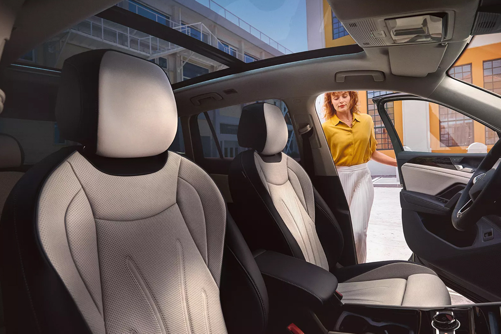 I sedili anteriori di Nuova Tiguan sono pensati per garantirti la massima comodità mentre sei alla guida, e ti permettono di arrivare a destinazione rilassato. Grazie ai sedili ErgoActive opzionali con inserti in pelle e funzione di massaggio non vorrai più scendere dalla tua auto. Il cuscino del sedile e dello schienale possono essere riscaldati separatamente, e a richiesta potrai goderti anche il massaggio con punti di pressione a 10 zone o la ventilazione del sedile da attivare nelle giornate più calde. A richiesta sono disponibili anche i sedili ErgoActive Plus con rivestimento in pelle Varenna che includono la regolazione elettrica, la funzione memory e la regolazione della profondità per i sedili anteriori. Sono inoltre comprese le fasce centrali dei sedili anteriori e posteriori esterni traforati in pelle Varenna ed i sedili anteriori con programmi di massaggio e climatizzazione attiva.
