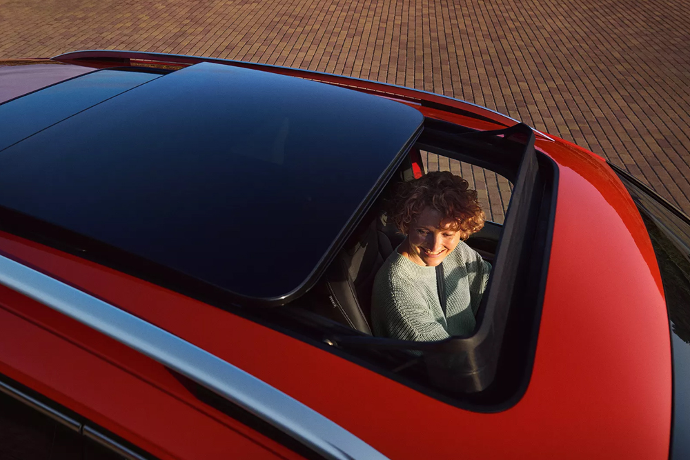 Disponibile a richiesta, il tetto panoramico apribile e scorrevole elettricamente attira ogni sguardo. Grazie alla sua ampia superficie vetrata, illumina l'abitacolo e offre una visuale senza limiti sul cielo. Il parasole elettrico protegge dall'eccessiva luce solare. Desideri un po' d'aria fresca? La metà anteriore del tetto può essere inclinata o aperta completamente.