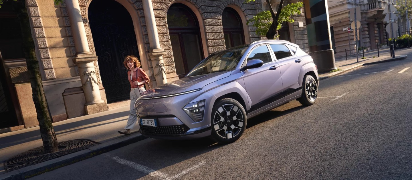 Lo stile dinamico di KONA Electric è accentuato dai rivestimenti dei passaruota in tinta con la carrozzeria che incorporano i gruppi ottici posteriori. Le linee parametriche diagonali che percorrono le fiancate si armonizzano con la modanatura satinata che attraversa la linea di cintura fino allo spoiler posteriore.