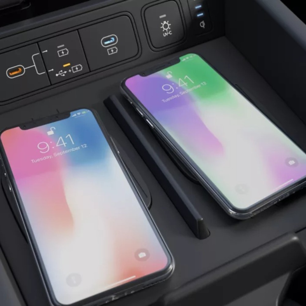 È bello sapere di poter viaggiare sempre connessi. Ecco perché SANTA FE è dotata di un elegante display panoramico con due schermi integrati, un touch screen da 12,3" per l'infotainment e un cluster digitale da 12,3".