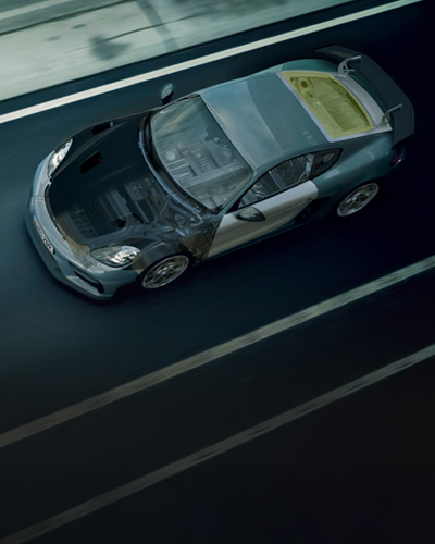 Flacht. Il luogo di nascita e la patria delle auto da corsa Porsche. Qui nasce anche il motore della 718 Cayman GT4 RS. Sviluppato, testato e migliorato per quel decimo di secondo che può essere decisivo in pista.