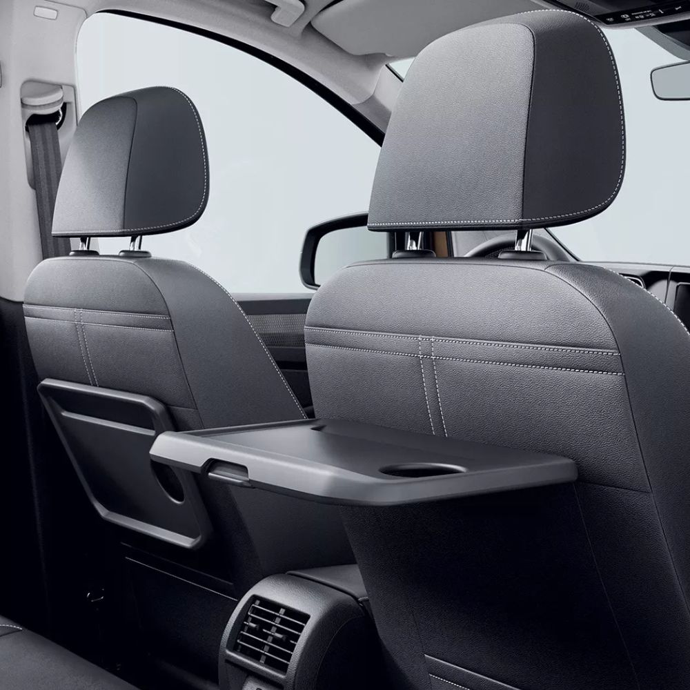 Pratici durante i lunghi viaggi: i tavolini pieghevoli1,2 negli schienali dei sedili anteriori offrono ai passeggeri della seconda fila una superficie facile da pulire e un porta bicchieri integrato.