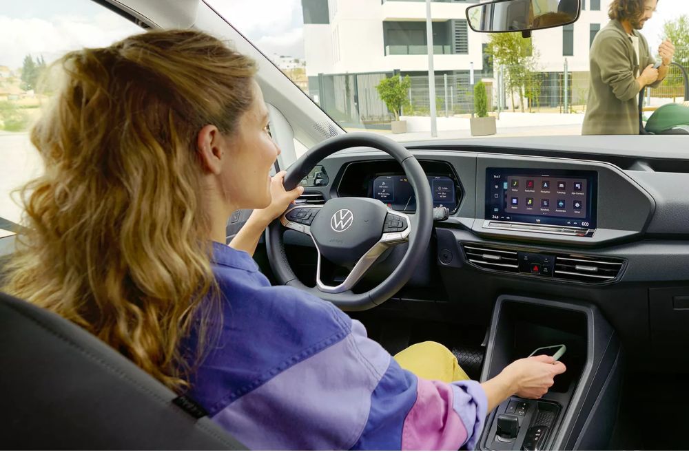 Caddy non si distingue solo per un frontale deciso con struttura a nido d'ape, ma anche per molte funzioni digitali come il pacchetto base gratuito VW Connect3. Inoltre il tetto panoramico, i fari a LED e i gruppi ottici posteriori opzionali, nonché l'illuminazione interna a LED lo rendono un veicolo moderno e sicuro. E per semplificare la tua giornata, Caddy è dotato del sistema di apertura porte e avviamento Keyless Advanced4.