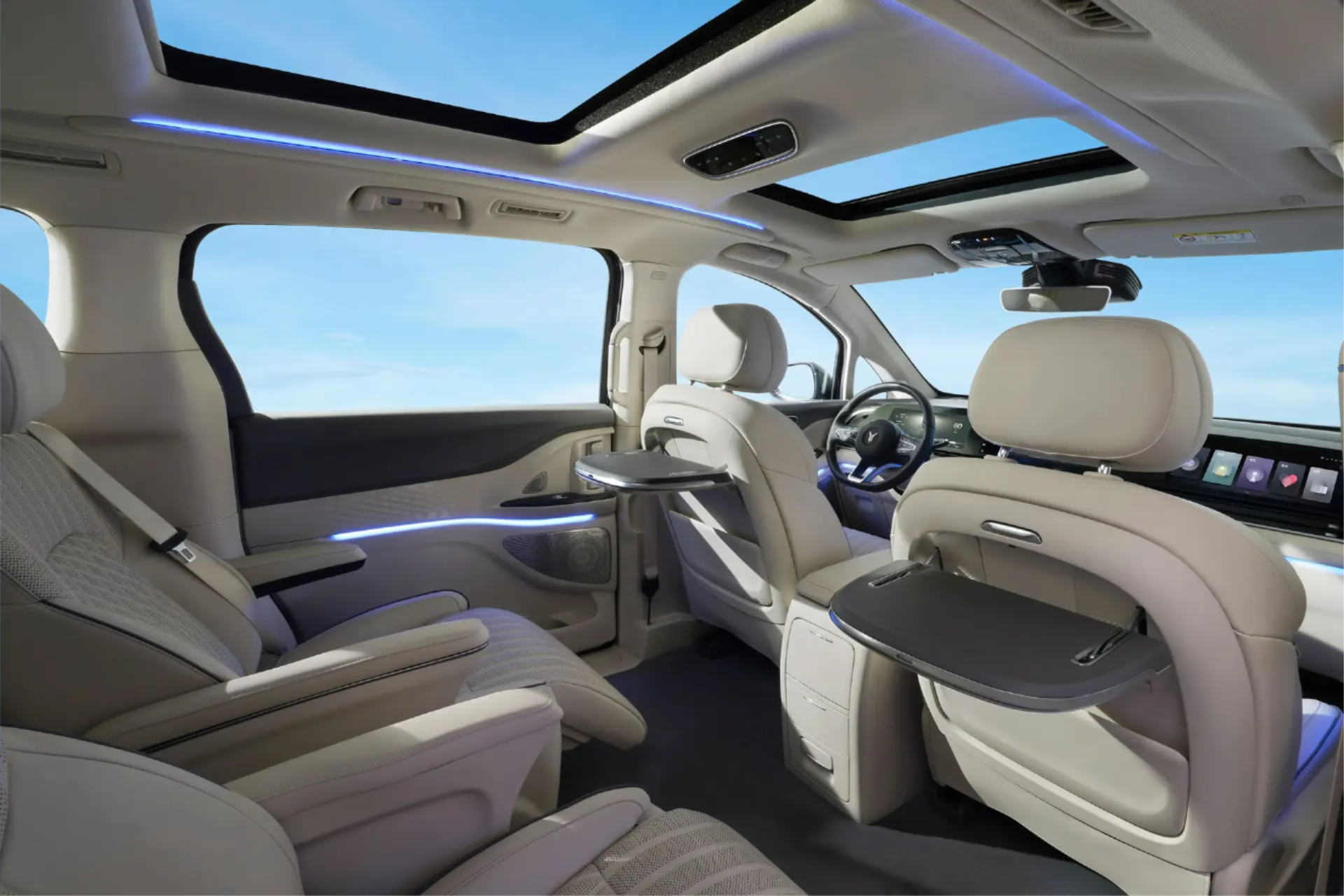 Voyah Dream offre una gamma di funzionalità di comfort aggiuntive per un’esperienza di guida di prima classe. Questi includono tavolini pieghevoli per i passeggeri della seconda fila, braccioli e portabicchieri per tutti i passeggeri, nonché ulteriori opzioni di stoccaggio come tasche dei sedili e scomparti nella console centrale.